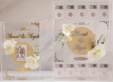 Dengan desain akrilik yang modern dan elegan, kami memastikan mahar Anda tetap berkelas tanpa menghilangkan makna mendalam dari emas dan perak di dalamnya. Bersama kami, wujudkan mahar yang tidak hanya melengkapi prosesi akad, tetapi juga menjadi warisan berharga yang mendampingi awal perjalanan rumah tangga. Pilih mahar yang tak hanya menjadi kenangan, tapi juga fondasi masa depan yang kokoh.
